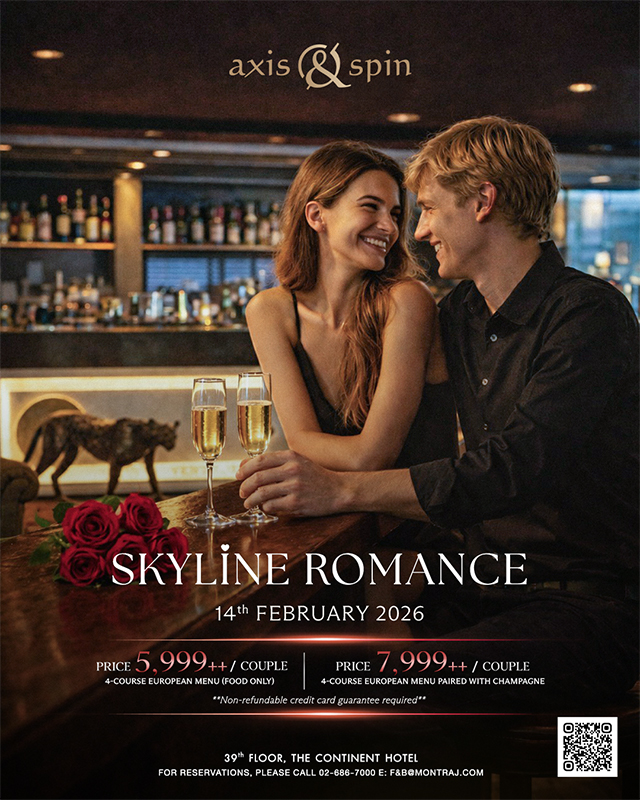 Axis & Spin stands as a premium sky lounge in Bangkok, situated on the 38th floor of the hotel. From this elevated vantage point, the venue offers a mesmerizing panorama, showcasing the radiant lights of Sukhumvit Road and the stunning cityscape beyond.